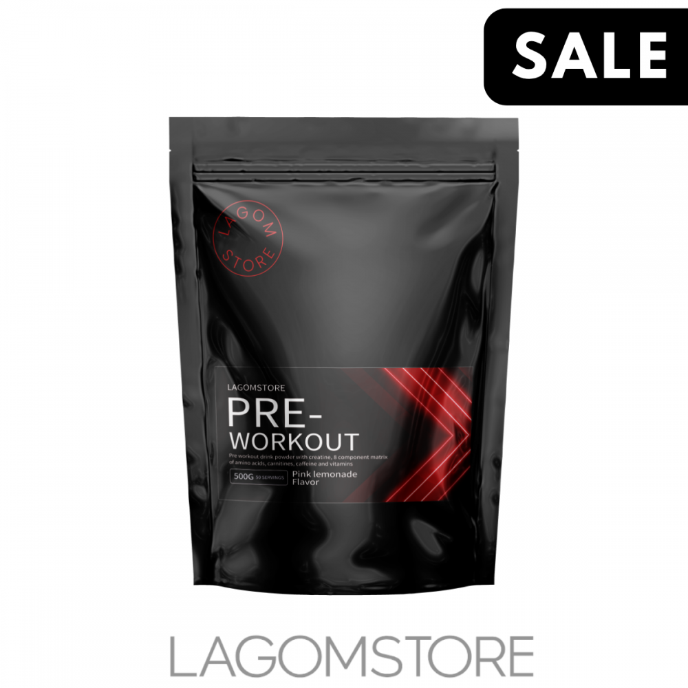 Lagomstore Pre-Workout je predtréningový energizujúci nápojový prášok s obsahom 18 aktívnych účinných látok, so 100% prírodných zdrojov kofeínu, kreatínu, beta alanínu.